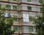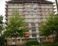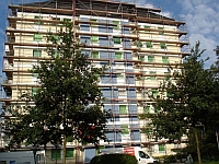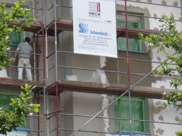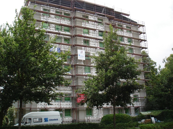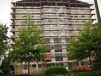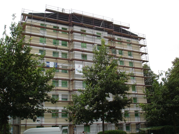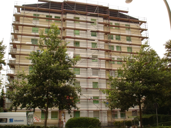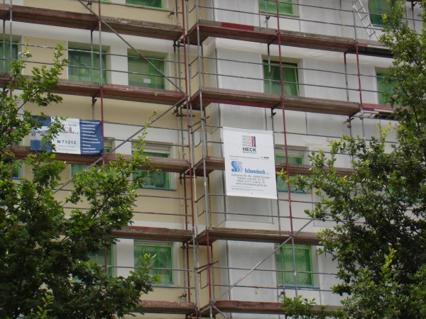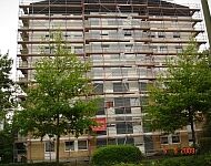Betonsanierung und Aufbringung eines Wärmedämm-Verbundsystemes mit anschließender farbiger Putz- Fassadengestaltung.